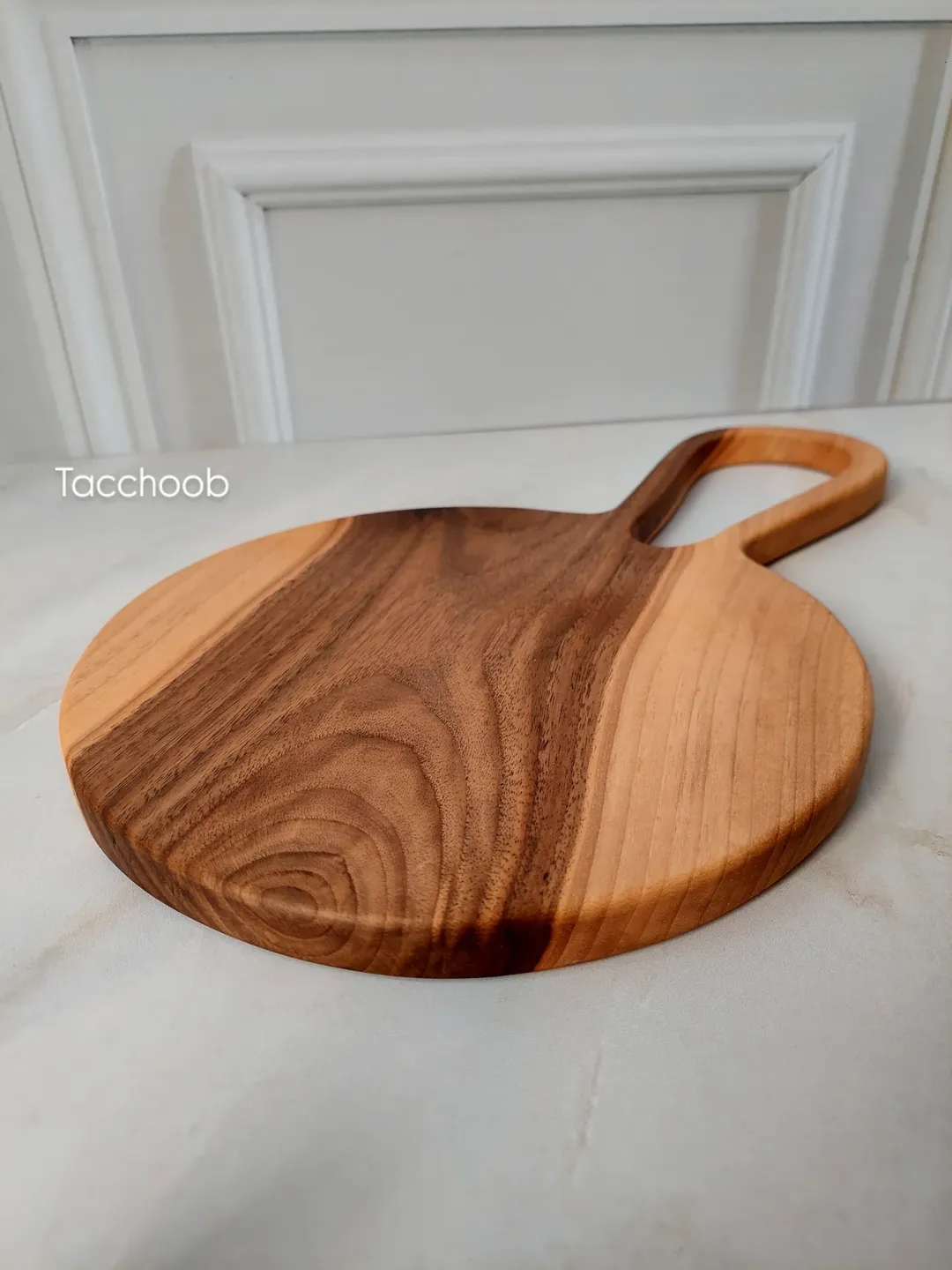 ساخته شده از چوب یه تیکه ی گردو رنگ طبیعی آبگریز شده با روغن گیاهی و ضد قارچ کوژین ابعاد:۲۱×۳۵.۵