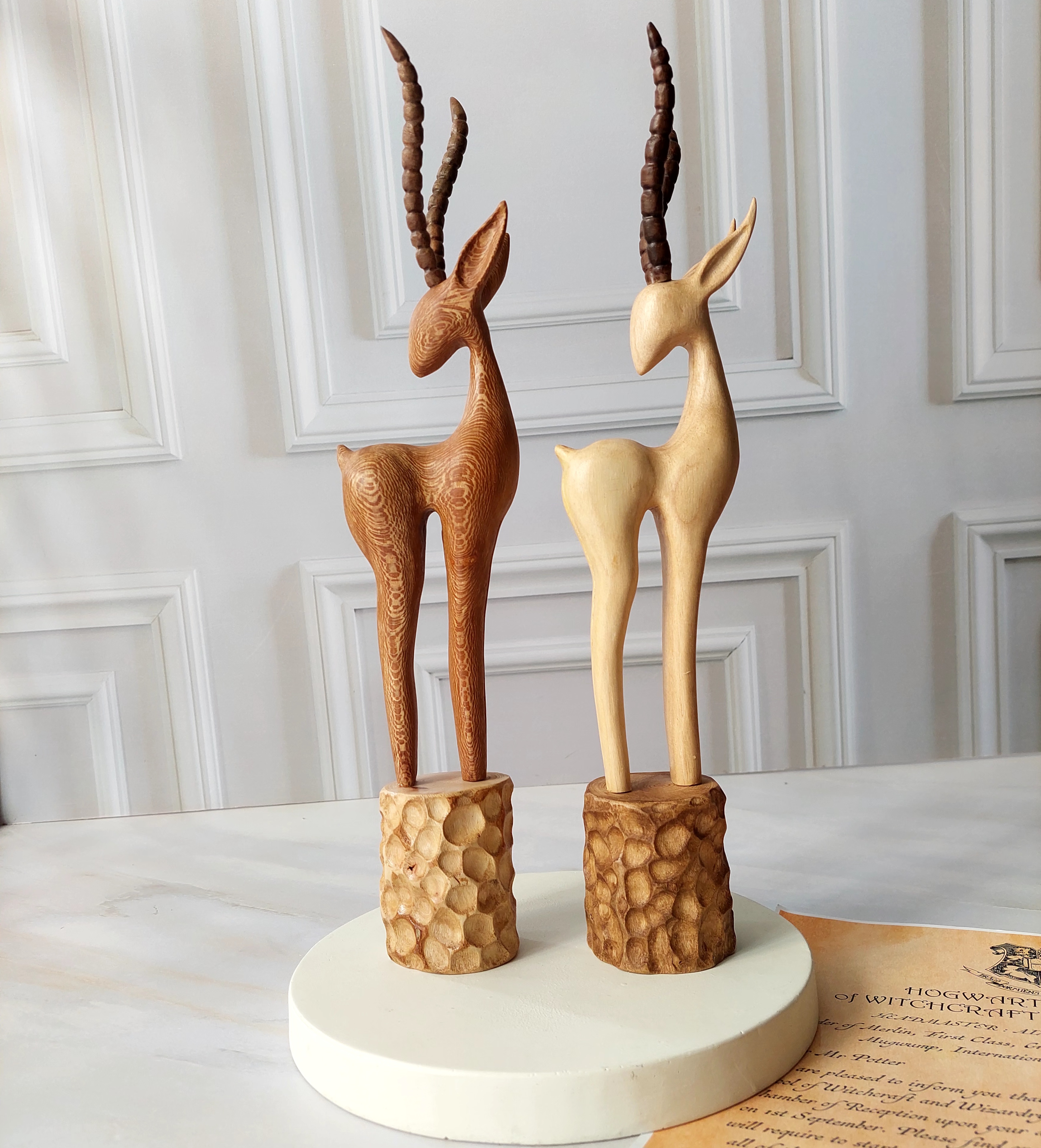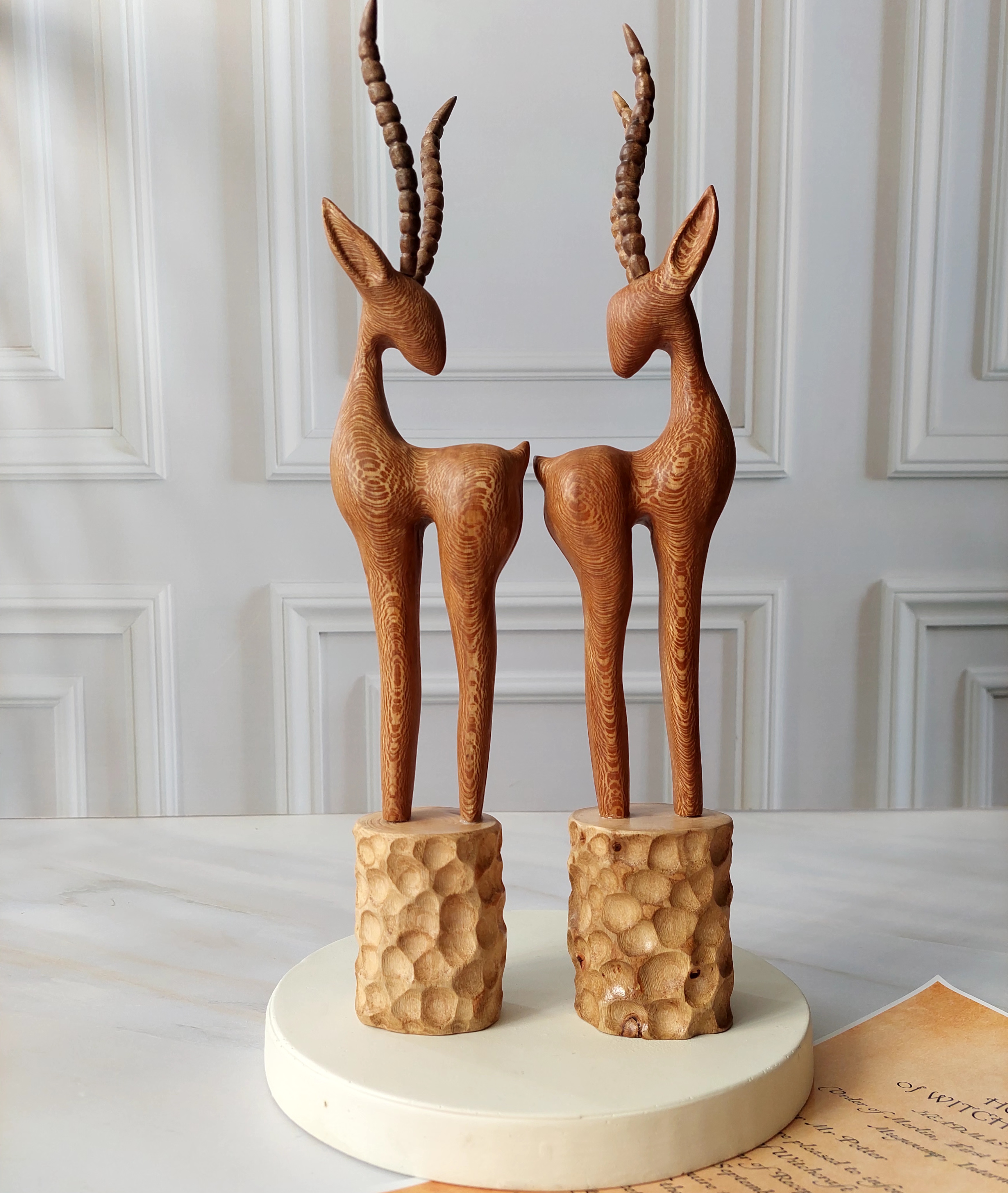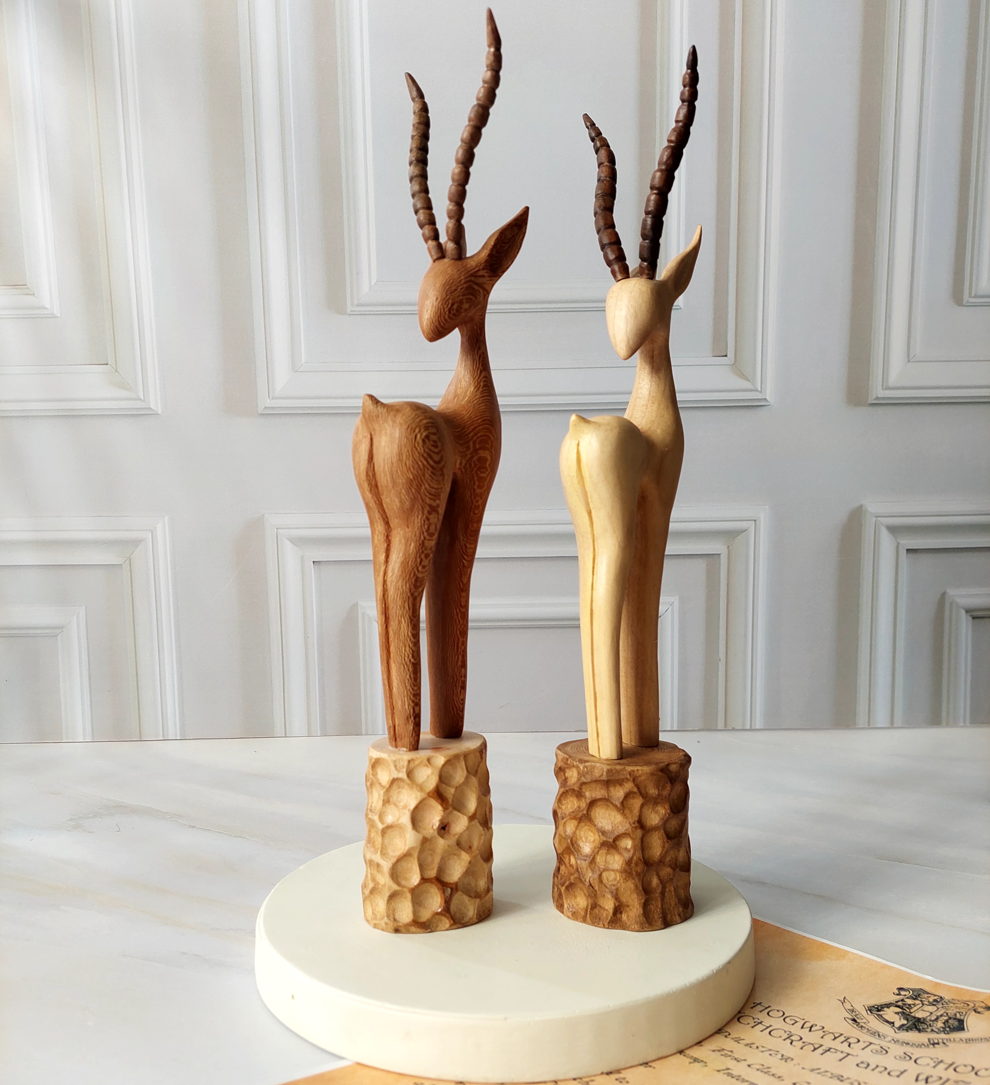 مجسمه غزال چوبی
