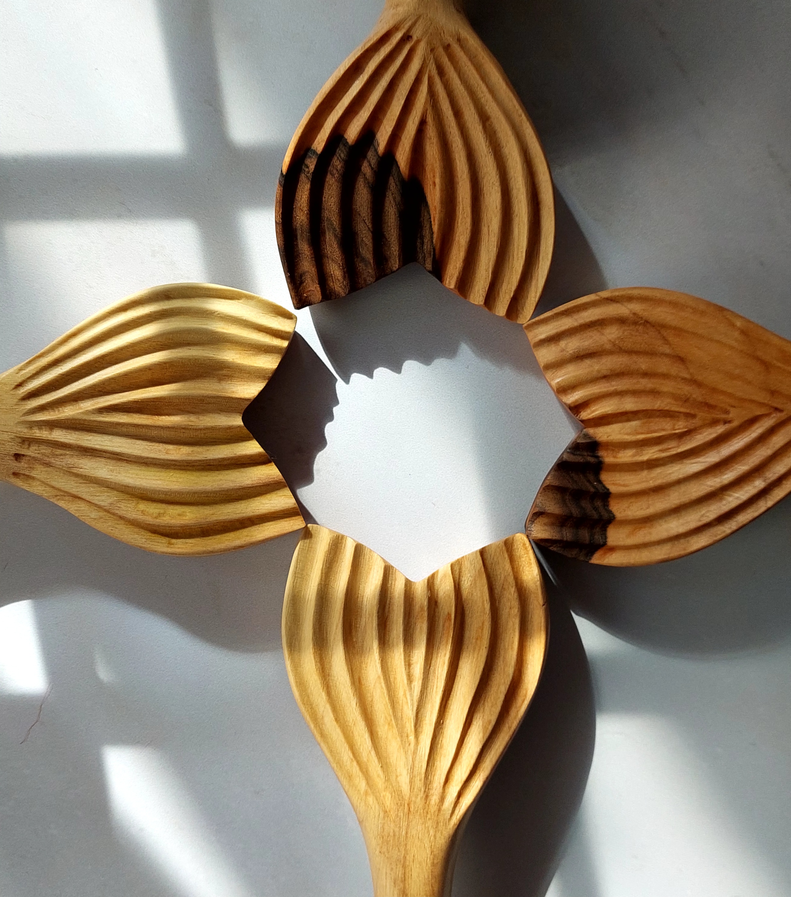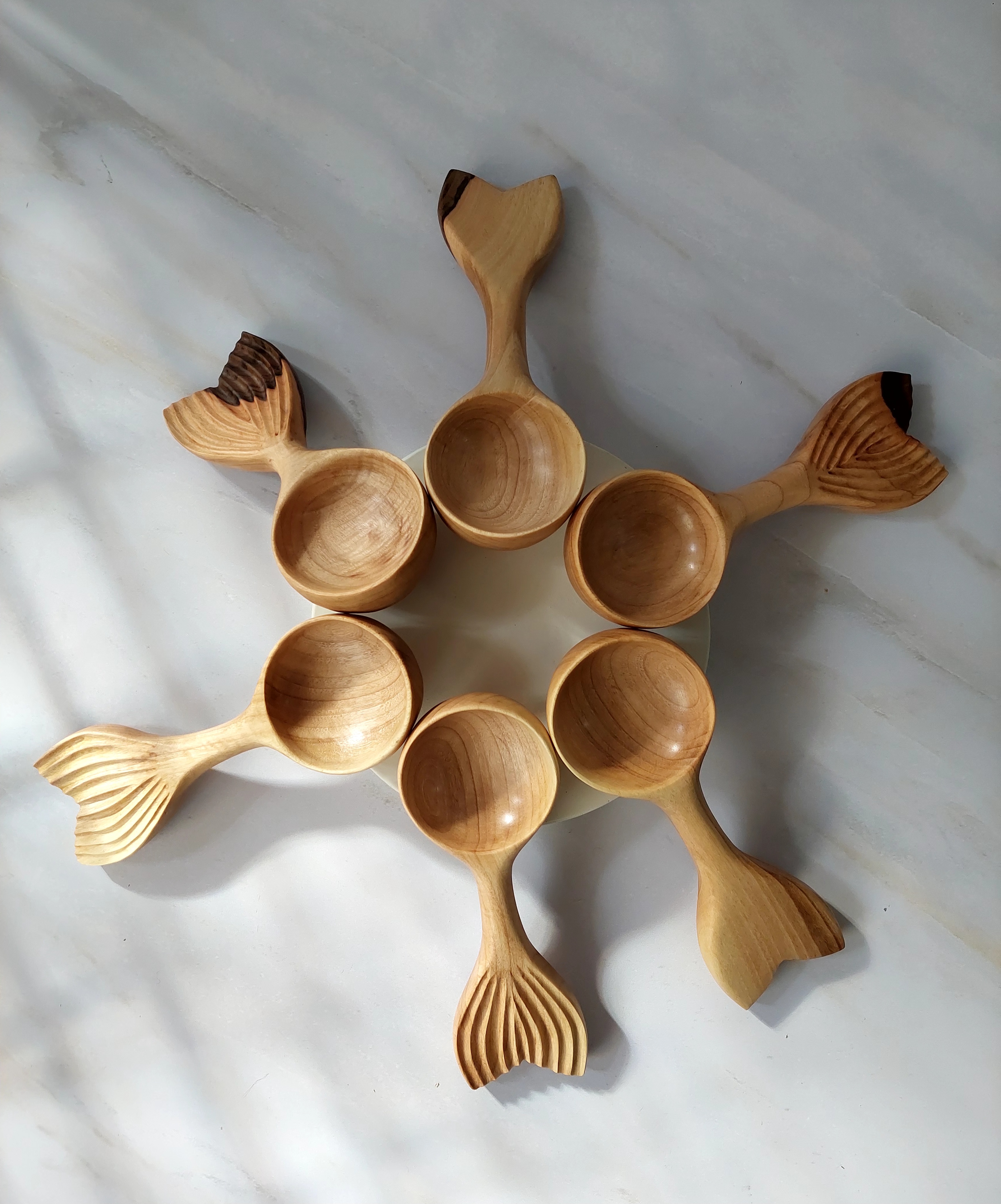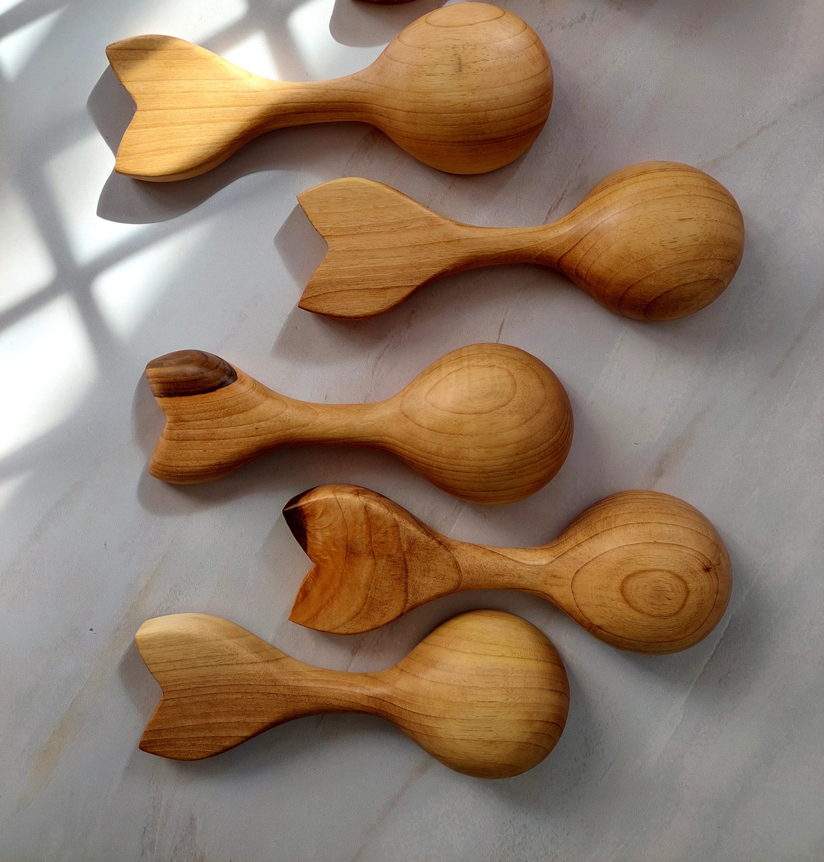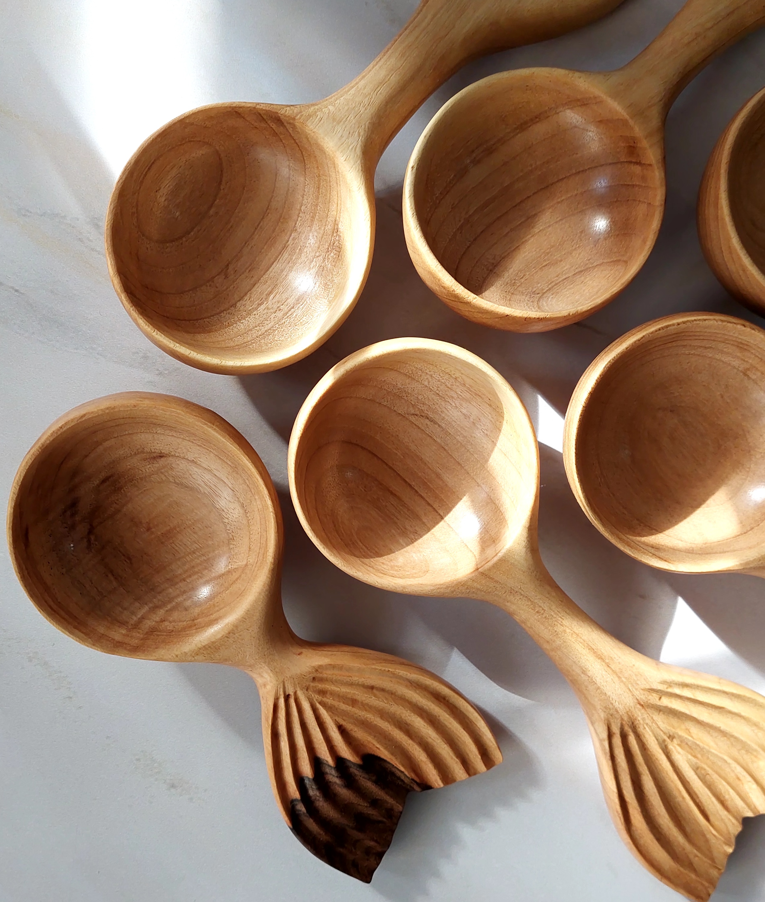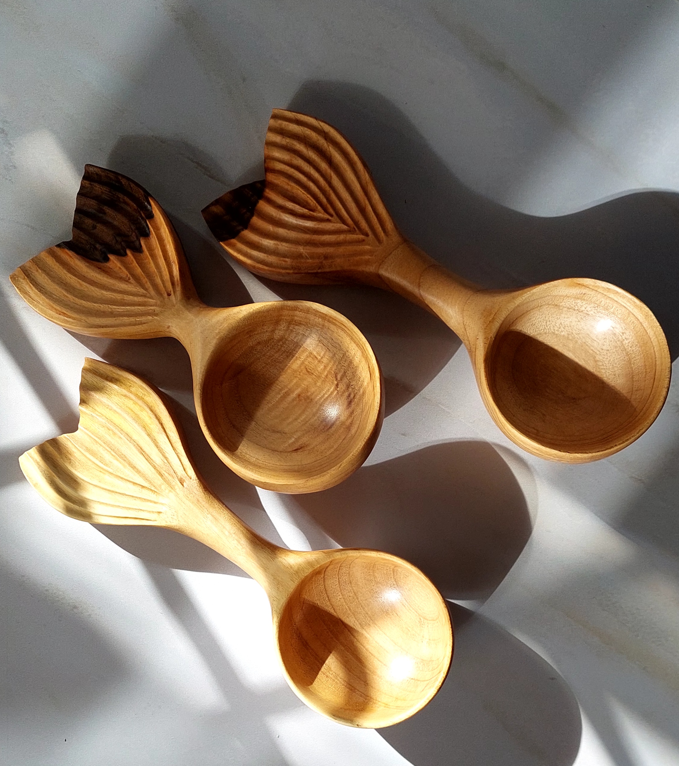 ملاقه ی چوبی ساخته شده از چوب گردو باطراحی دم ماهی