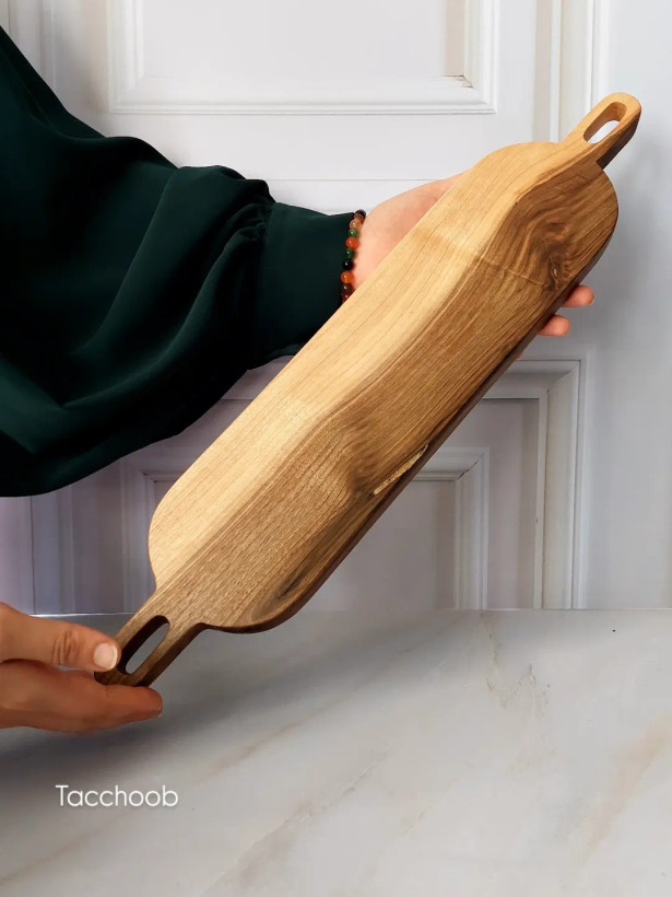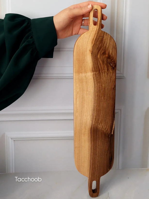 ساخته شده از چوب به تیکه گردو مناسب برای سرو شیرینی و صبحانه اگه دنبال یه کار پینترستی هستید این تخته سرو در عین سادگی بسیار شیکه آبگریز شده با روغن گیاهی و ضد قارچ کوژین(دارای اعتبار سلامت) ابعاد:۱۱×۵۳